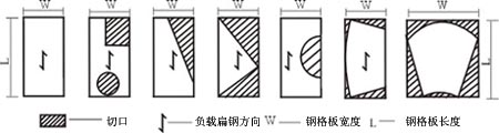 1、在沒有圖紙、按用戶規定尺寸加工的,面積為實際交付鋼格板的數量乘以寬度和長度的總 和,它包含開孔和切口部分。