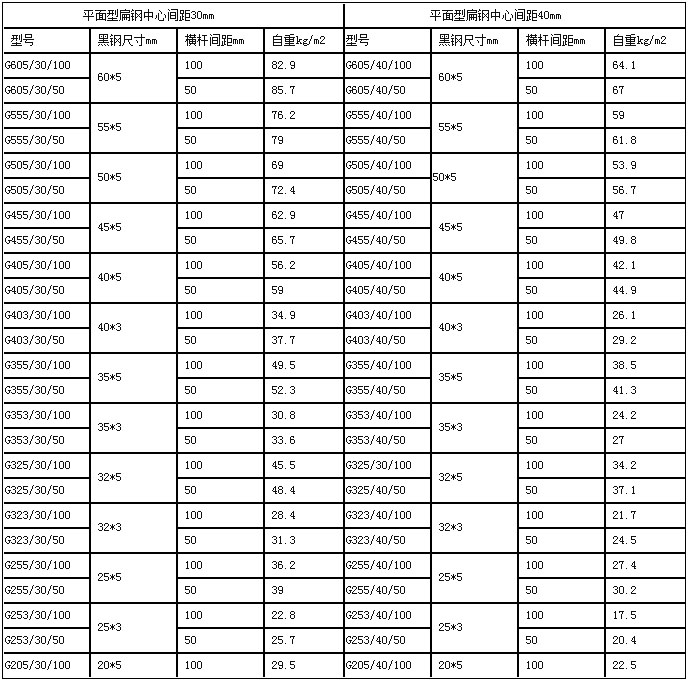 鋼格板的重量是指經過包邊和表面處理(非表面處理的除外)后的理論重量。由于包邊、開孔和切口的不同,實際重量與理論重量會出現差異。在工業平臺鋼格板自重計算及鋼格板交付結算中,統一以理論重量為計算依據。對于長度小于1米的鋼格板例如溝蓋板或者需要作特殊包邊的鋼格板,由于包邊板的增加,重量會隨著增加。用扁鋼包邊,鋼格板長度不小于1米時,按下面公式計算鋼格板理論重量: