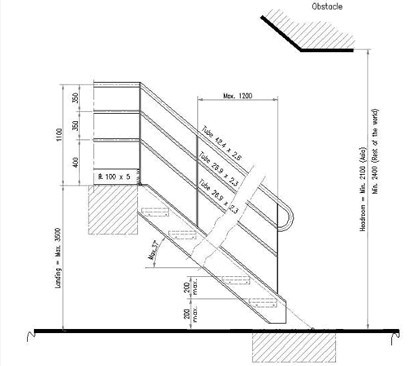 3、 樓梯踏步板的端邊板必須單面滿焊,與負載扁鋼同向的包邊板必須與每一根橫桿焊接,樓梯踏步板如有前沿包邊護板,必須貫穿整個踏步。