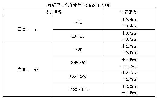 其尺寸公差還是按GB/T 704的規定,附上與BS 4592:1-1995對比,應該說滿足作為鋼格板的負載扁鋼的技術要求。