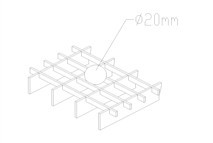 國際標準ISO 14122-2:2001和國家標準GB 17888.2-1999強調避免由墜落物體引起的危險,下方有人的開敝平臺、走道,最大開口應不能使直徑20mm的球體通過其下落,為此我們將其稱之為細目鋼格板。細目就是小間距的意思,我們定義細目鋼格板的凈空間隙小于20mm。細目鋼格板結構圖如下: