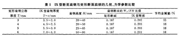 等高原則用IX型斷面扁鋼代替矩形斷面扁鋼之后,其幾何、力學參數對比情況如表1所列。