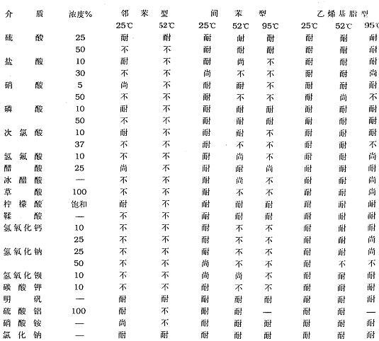 聚酯樹脂生產廠家的測試數據表明,聚酯玻璃鋼能使用于上表的腐蝕。此表僅供參考。