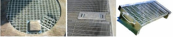 采用鋼格板制作的溝蓋板以適合不同的載重負荷。由于溝蓋板施工簡單、重量輕、承載好、抗沖擊、寧彎勿折、排水量大、經過熱浸鋅處理后美觀耐用,防腐,具有鑄鐵蓋板不可比擬的優點。并且采用鉸鏈聯結或者采用鉤聯接等方式,便于開啟,并具防盜功能。在工廠和一些高檔小區中廣泛應用。