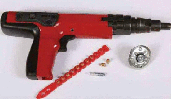 2、安全觸壓技術:配套專用安裝工具配有安全裝置,施工時需正對被固定無界面,并施加至少60N的壓力方能扣動扳機擊發。這個設計是為了防止安裝工具不慎墜落時意外擊發。