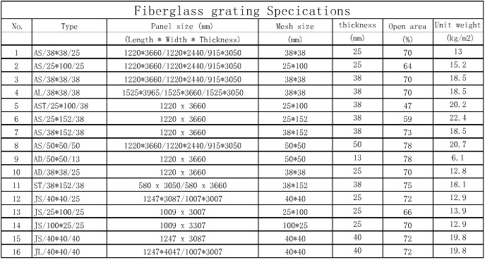 玻璃鋼格柵板產(chǎn)品規(guī)格