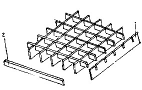格柵條經緯焊接生產的鋼格柵板,一般縱向的格柵條是主要的荷載承受體,當鋼格柵板所使用的區域是對承載力要求不高時,作為連接的橫向格柵條高度可以降低, 這樣的連接格柵條被稱為窄鋼條,而這種格柵板被命名為半插鋼格柵板。如把作為連接件的窄鋼條置換為鋼桿件,就形成了另一類型的鋼格柵板。