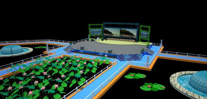 水隱舞臺結(jié)構(gòu)主要由預(yù)埋件、鋼龍骨、鋼格柵板、水下 LED彩珠等組成,通過整個承載系統(tǒng)實現(xiàn)舞臺的高承載力和表演藝術(shù)的要求。 舞臺整體平整度要求全部舞臺面不得有大于 4mm 的階臺高差,鋼格柵板塊接縫寬度≤5mm。 舞臺面標高-0.45m,蓄水位標高-0.40m,蓄水量達 280m 3 。 在燈光效果方面,在鋼格柵板下安裝水下LED 彩珠 、LED 燈及其連接線,水下防水等級達到 IP68 級, 通過智能控制系統(tǒng)配合其它的表演載體,在夜色的襯托下絢麗多姿, 實現(xiàn)舞臺雄偉壯觀的表演效果,以上情況均對舞臺鋼結(jié)構(gòu)設(shè)計和安裝提出了很高的要求。