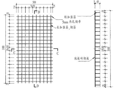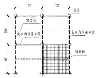 1、由于舞臺透水面板既要求有很高的承載力 ,并且要達到很高透水率要求,因此必須對面板進行結(jié)構(gòu)加強設(shè)計。經(jīng)綜合分析,采用鋼格柵板縱橫向加強肋對面板單元進行結(jié)構(gòu)剛度的加強, 其中鋼格柵板橫向加強肋采用 5mm 厚熱軋鋼帶、縱向加強筋采用 f 10 鋼筋,同一塊鋼格柵板上且平行的加強肋間距 100mm(如圖 1),通過對鋼格柵板加強肋深化設(shè)計, 彌補了鋼格柵板開孔對結(jié)構(gòu)剛度的削弱缺陷, 很好地滿足了舞臺安全性要求。