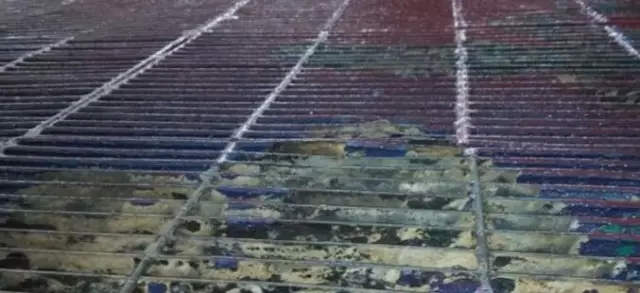 但即使水壓設定極高,仍然不能夠將格柵板上的積漆清理干凈,很多時候的處理結果會如下圖所示: