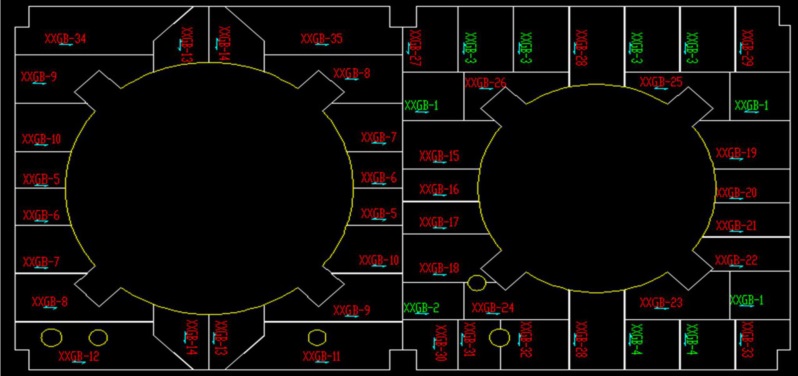 1、自動編號,圖紙分解完畢后,程序根據圖紙中事先確定的方向,程序自動編號,并計算出長、寬尺寸、踢腳板尺寸、開口開洞及其大小。相同圖形唯一標號。圖號轉換功能。編號可分別按繪制順序、長度、寬度排序。