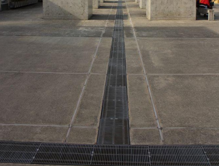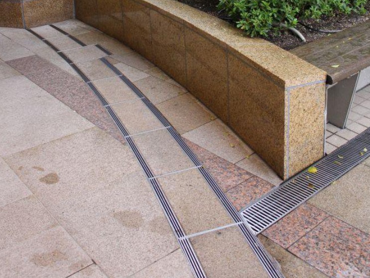 在承載要求較低的場(chǎng)地,比如人行道,使用金屬材料就好。但在承載要求高的場(chǎng)地,則需要用到承載能力更強(qiáng)的不銹鋼板材、混凝土板材或者玻璃鋼板材。三種材質(zhì)的排水溝蓋板,景觀效果也不相同,金屬蓋板一般與地面鋪磚色彩質(zhì)感差異較大,而且可塑性強(qiáng),可以做成各種圖案和文字,所以一般可以用來(lái)劃分空間或者是鋪裝裝飾;炷辽w板可塑性較差,但色彩與鋪裝色彩、質(zhì)感一般較為接近,可以和周邊環(huán)境融合。玻璃鋼格柵板蓋板,可以形成較強(qiáng)的現(xiàn)代感。