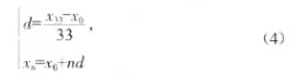 式中:xo和xg為手動示教時標(biāo)定的第1格和第34格槽位的絕對位置坐標(biāo);x。為要求的第n+1格絕對位置坐標(biāo),n取0到33之間的整數(shù)。