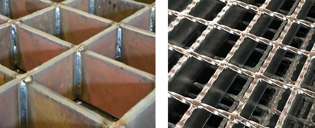壓焊鋼格板采用機器壓焊,焊點一致性好,焊點更牢固。壓焊鋼格板平整度好,也便于施工安裝。壓焊鋼格板采用機器壓焊,沒有焊渣鍍鋅后更加漂亮美觀。壓焊鋼格板要比采購人工焊接鋼格板質量更有保證,使用年限也會更持久。手工制作橫桿與扁鋼在組對時會存在空隙,且難以保證每一個接觸點都能牢固焊接,強度有所降低,施工效率低,整齊美觀性略差于機器生產。
