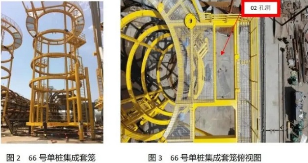 事故發生點位于江蘇外場地作業區66號單樁集成套籠(立式)外作業平臺。66號套籠外作業平臺距地面高18.52米,套籠直徑7.50米,02孔洞長3167毫米,寬1113毫米。66號單樁集成套籠南側為36號單樁集成套籠(立式);東側為軌道、油漆庫;北側、西側為單樁集成套籠(臥式)。