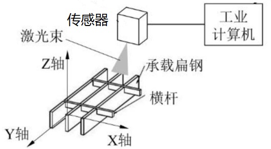鋼格板壓焊質量在線檢測方法,通過鋼格板壓焊質量在線檢測系統進行鋼格板表面平整度和變形量的在線測量,具體步驟如下: