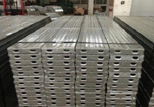 由于鋼板本身比木板的摩擦系數小的多,所以對鋼板必須采取防滑措施,才能確保工人在高空作業的安全。目前國內鋼跳板的防滑板面主要有反邊圓孔、圓凸鼓、梅花長孔、梅花凸鼓以及橫長凸鼓等多種。