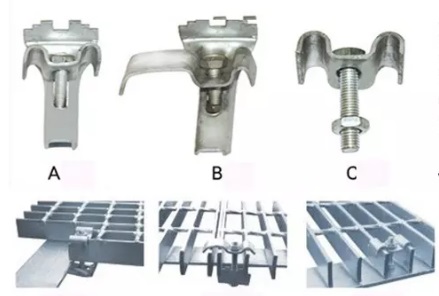 鞍形夾安裝鋼格板,原則上一般1m2鋼格板不少于4套鞍形夾,安裝在鋼格板的4個角上。但是對于跨距較大的鋼格板****在可利用的支承物上多安裝幾套,數量上也應適當增加。鞍形夾是最常用的固定方式。大致有三種類型: