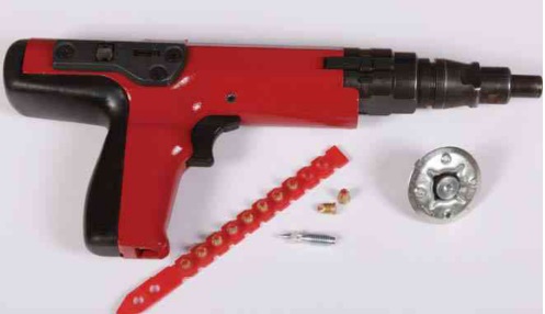 安全觸壓技術:配套專用安裝工具配有安全裝置,施工時需正對被固定物界面,并施加至少60N的壓力方能扣動扳機擊發。這個設計是為了防止安裝工具不慎墜落時意外擊發。