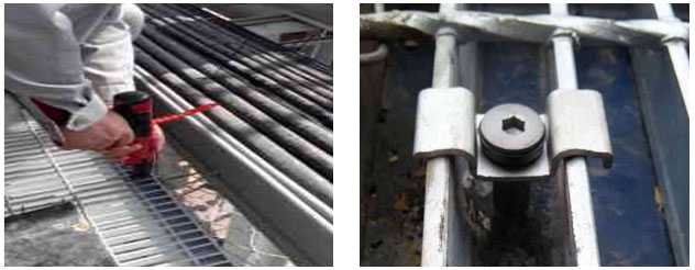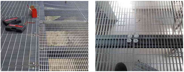 鋼格板射釘緊固技術是一種直接固定工藝,利用專用射釘器擊發射釘彈,使釘彈釋放出能量,將鋼釘直接射入鋼鐵、混凝土等基體中,將需要固定的構件如格柵板、花紋板等臨時或永久固定。
