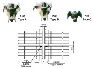 3:鋼格板一旦擱置在梁上,應(yīng)馬上將其嚷固(焊接或安裝夾),以避免鋼格板位移,造成安全事故。