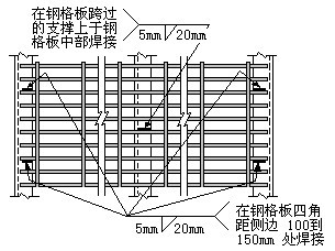 將鋼格板焊接在支承梁上,以形成堅(jiān)固的永久性連接。