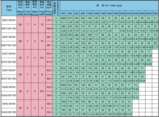 根據(jù)荷載和變形撓度的要求,利用荷載撓度關(guān)系表,用戶可選擇既經(jīng)濟又安全的鋼格板型號