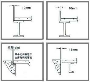 虛線為規定切除,實線為實際切除 矩形切口按下一根負載扁鋼能讓障礙物通過來制作