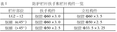( 2) 梯坡度 > 45 度時, 此種情況僅在特殊區域使用。構件信息: ①扶手: 鋼管 Φ50 × 2. 5; ②中間欄桿: 三無;③立柱: 鋼管 Φ33. 5 × 3. 25; ④踢腳板: 無。