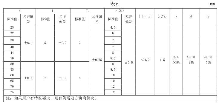 I型扁鋼的截面尺寸及允許偏差應符合表6的要求。