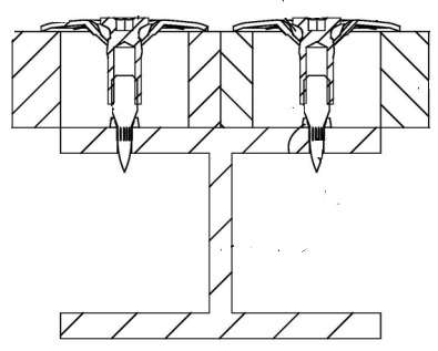 該安裝結構可以拆卸,利于檢修。打入在承載件內的射釘受定位墊圈保護, 避免了腐蝕和損壞,即使更換連接螺釘,射釘還可以重復利用。且安裝過程無需焊接和鉆孔,無須牽引電源線,安裝快速、簡單、清潔。圓盤結構科學,受力性能好,可重復利用,降低維護成本。安裝過程中不破壞任何表面預制涂層,不需后續防腐處理。安裝靈活,一人一 個工具,即可滿足不同鋼格柵板的安裝要求。