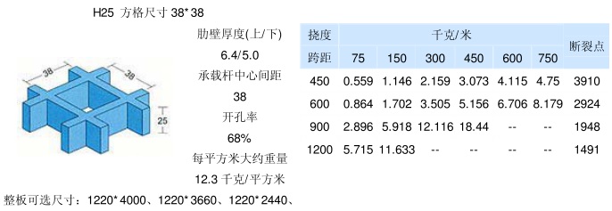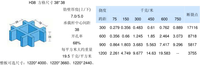 玻璃纖維增強塑料格柵(簡稱玻璃鋼格)是一種用玻璃纖維作增強材料、不飽和聚酯樹脂作基體,經特殊加工方法復合面成的-種帶有許多空格的板狀材料。由于具有耐腐、阻燃、輕質高強、抗沖擊、絕緣、防滑、無磁性、美觀、安裝方便、耐老化、抗疲勞等優良特性、廣泛應用于石油化工、冶金、電力、食品、交通、環保等工業領域。模塑玻璃鋼格柵成型簡便、市場需求大,生產廠家越來越多;隨著市場需求增加,對格柵的要求越來越高。為了廣大用戶選型方便,現提供玻璃鋼格柵板的常見規格產品選型表,希望能給大家帶來幫助。