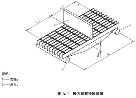 采用彎曲試驗法,對鋼格板的靜力荷載性能進行檢驗,測量鋼格板在跨中施加集中荷載時的彎曲撓度,以核對設計要求和對鋼格板產品進行質量檢查。