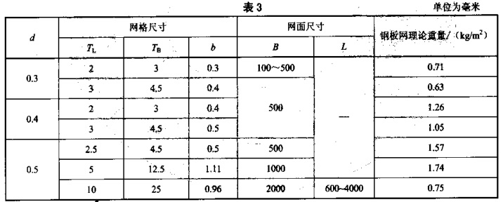普通鋼板網:普通鋼板網的型式尺寸應符合表3規定(見圖1)。