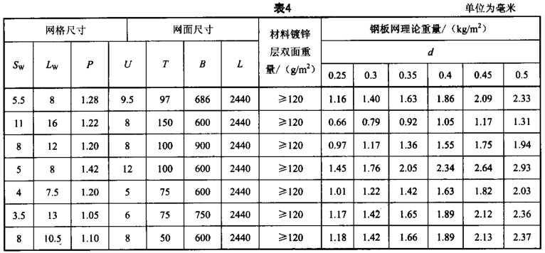 建筑網:有筋擴張網的型式尺寸應符合表4規定(見圖2)。