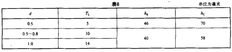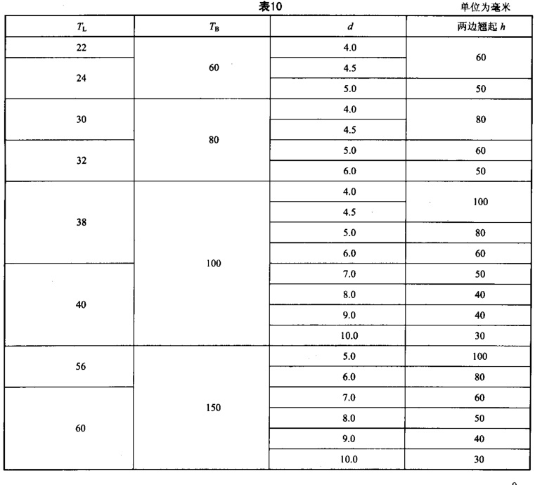 11、d為0.25mm~0.50mm有筋擴張網的網面翹起h應不超過表13規定。