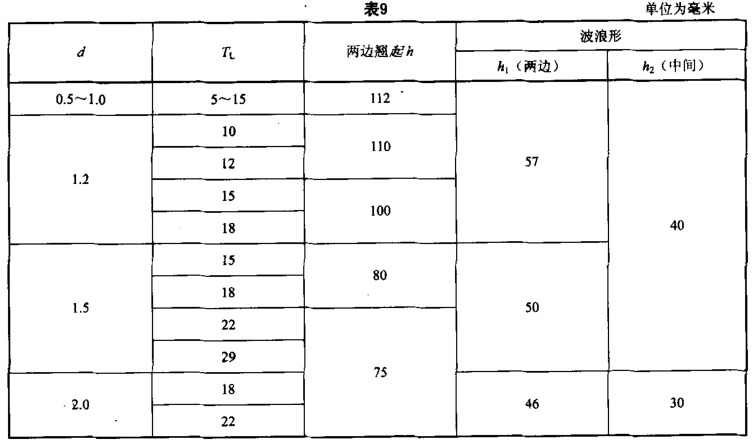 7、d為0.5mm~3mm,L>1000mm網面平整度應不超過表9規定。