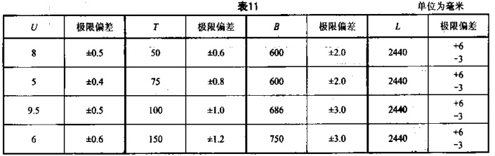 9、有筋擴張網網筋高U、筋距T及網寬度B、長度L的偏差應不超過表11規定。