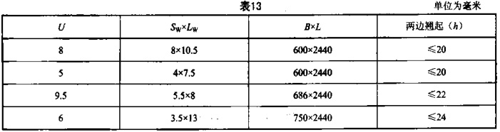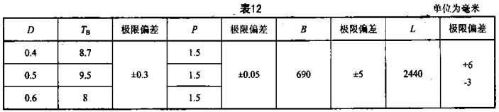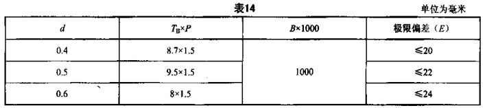 12、批蕩網d為0.4mm~0.6mm的網面不平度E(E=r一t)不應超過表14規定。