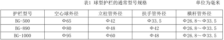 球型護欄的型號規格如表1所示: