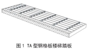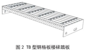 鋼格板樓梯踏板由鋼格板制造,包括前沿防滑突緣和端邊板。鋼格板樓梯踏板的結構分為T1、T2、T3、T4四種結構形式。T3型鋼格板樓梯踏板用與承載扁鋼相同規格的端邊板包邊,前沿貫穿防滑突緣。安裝方法為直接焊接在梯梁上,如圖1所示。T4型鋼格板樓梯踏板用帶有安裝孔的端邊板包邊,端邊板寬度為60mm~65mm,前沿貫穿防滑突緣。安裝方法為用螺栓連接在梯梁上,如圖2所示。