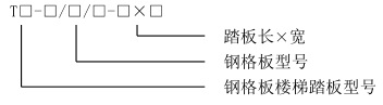 T4-325/30/100-800×275表示端邊板帶有安裝孔、前沿貫穿防滑突緣、用螺栓連接安裝的T4型樓梯踏板,鋼格板型號為G325/30/100,踏板長(梯寬)為800mm,踏板寬為275mm。