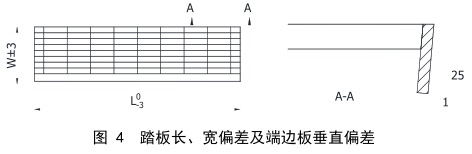 踏板長、寬尺寸偏差及端邊板垂直偏差如圖4所示。