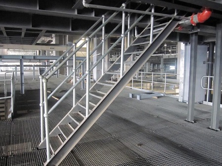 鋼斜梯采用鋼材的力學(xué)性能應(yīng)不低于Q235-B,并具有碳含量合格保證。