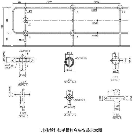 在工業場合,欄桿是一種勞動安全防護設施,其設置的目的,就是消除人和物從高處墜落的危險。固定式球接欄桿,便于生產廠在工廠內統一制作,便于運輸,現場安裝方便。更由于固定式球接欄桿的所有零部構件都可以通過熱浸鋅或粉末滲鋅表面處理,獲得良好的金屬防腐保護,減低日后的維護費用。因而在電力工程中的使用日趨廣泛。火力發電廠的鍋爐平臺,是大量使用安全防護欄桿的工業設施之一。下面介紹一下鍋爐平臺固定式球接欄桿的結構型式。