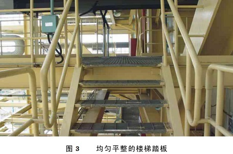 對于用螺栓連接的梯子應保證梯子安裝的強度。樓梯踏板安裝應均勻平整。如圖3所示。