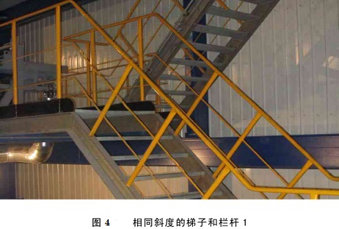 欄桿柱子垂直偏差:≤3mm,欄桿柱距:間距均勻、符合設計。立柱安裝時先將根部點焊,用鐵水平找垂直后再焊牢。同一直線上的立柱應先安裝兩端的兩根,然后在這兩根立柱之間拉一細線或鋼絲,作為其它立柱的基準,以保證所有立柱在同一直線上。所有立柱之間的距離應盡量做到一致。梯子兩側立柱應在對稱的位置上安裝。如圖4所示。