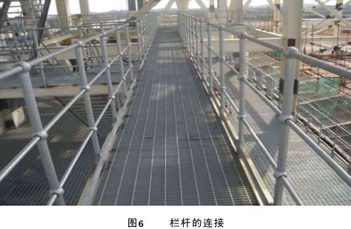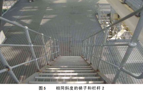 欄桿的安裝在立柱安裝找正后進行。欄桿的安裝應用拉線法結合使用鐵水平,以保證欄桿的直線度和水平度。相同斜度的梯子上的欄桿斜度應一致。欄桿拼接采用機械加工,不允許使用火焰切割。加工尺寸準確,安裝位置統一美觀。如圖5所示。