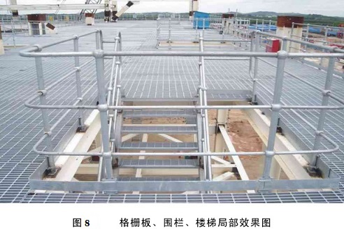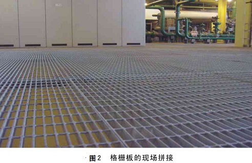 對因與柱梁結構相碰而需要切割的部位,在切割部分網格后應考慮局部網格的加強。格柵板放置應平穩無翹曲,焊接或卡固牢固。采用點焊固定方式時,焊點位置應盡量選在便于焊接、清理、油漆的地方。如圖2所示。