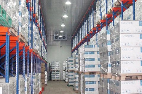 冷庫主要用作對食品、乳制品、肉類、水產、禽類、果蔬、冷飲、花卉、綠植、茶葉、藥品、化工原料、電子儀表儀器等的恒溫貯藏。為了放置較多的貨物,貨架的高度一般都會設置很高,工作人員在搬運最上層貨架上的貨物時,會比較吃力,且花費的時間也相對比較長,人員長時間在冷庫內容易受冷生病。一種采用鋼格板作為鋪板的冷庫專用貨架,方便了工作人員將貨物放到貨板上,使工作人員在搬運貨物時,更加省力、快捷,避免人員耗費太多的時間用于搬運貨物,解決上述的問題。